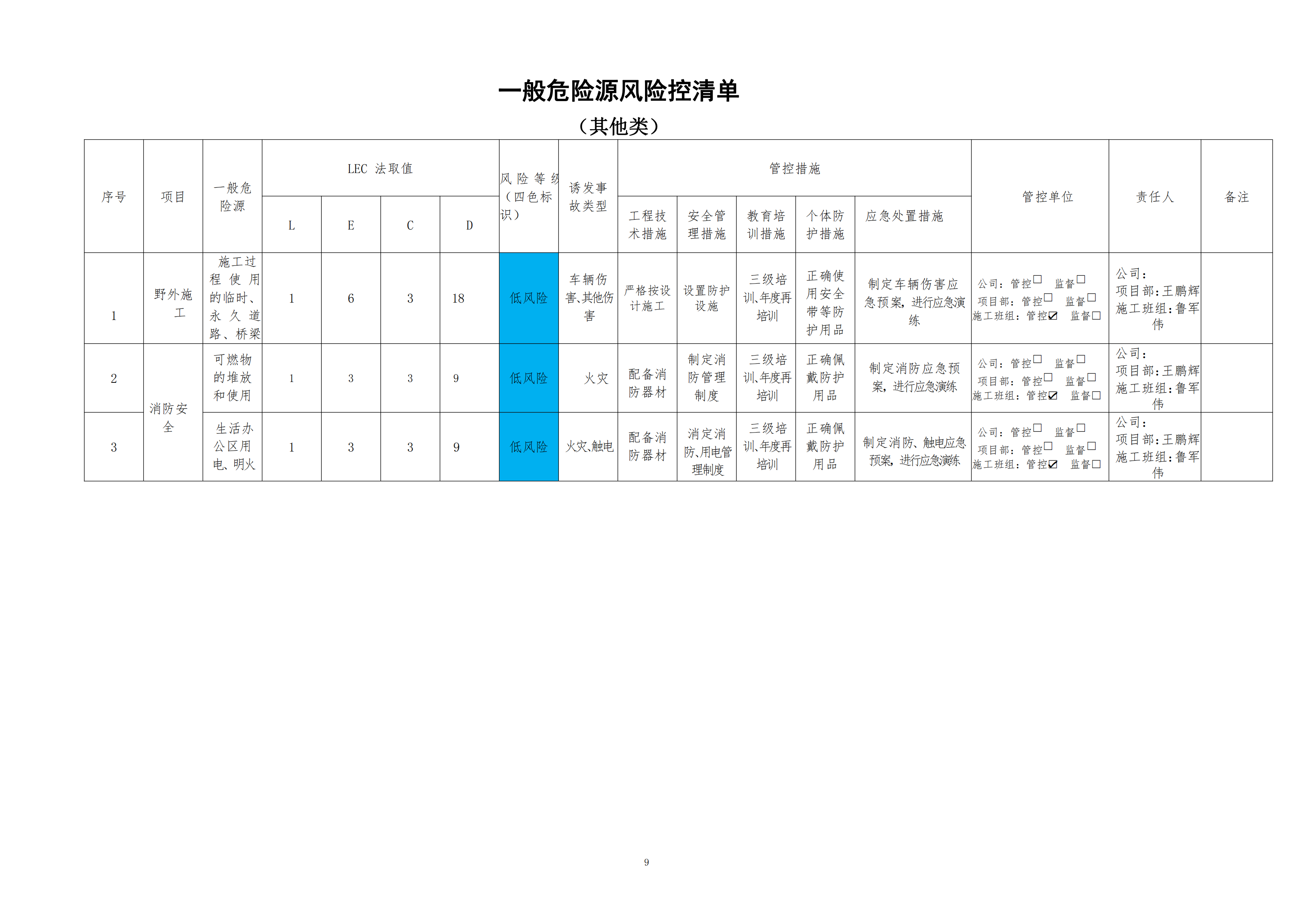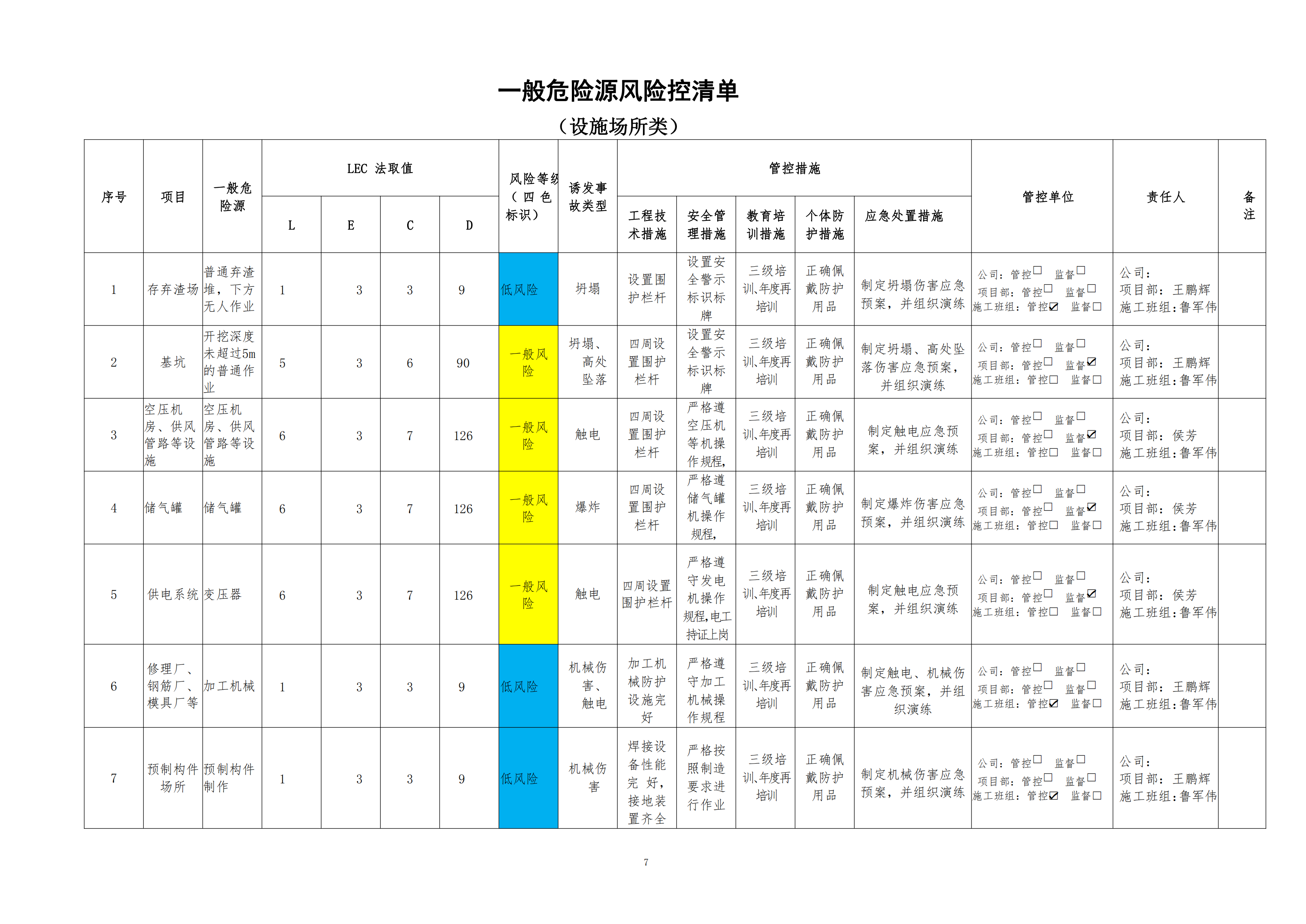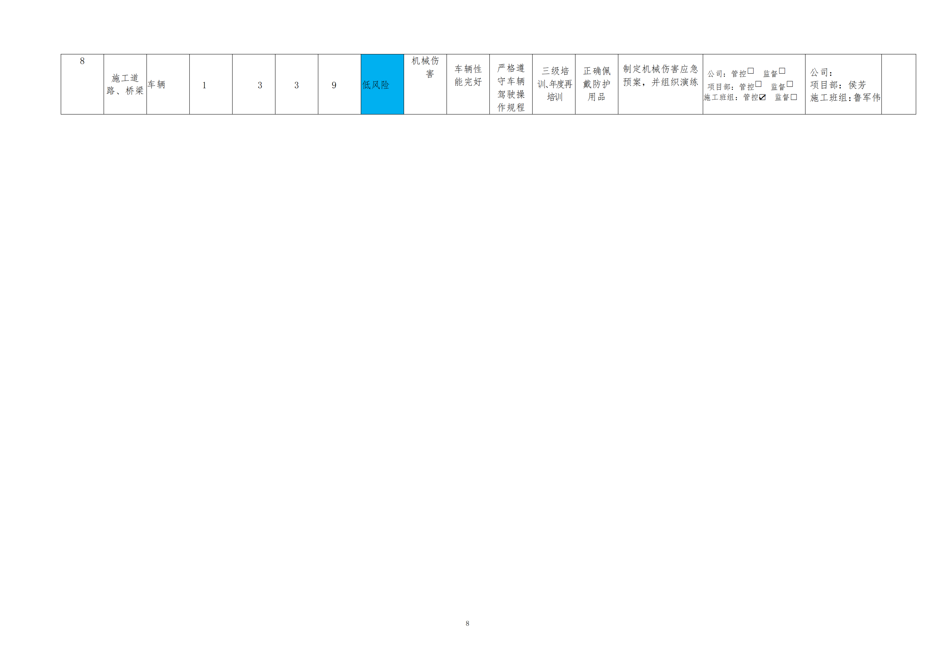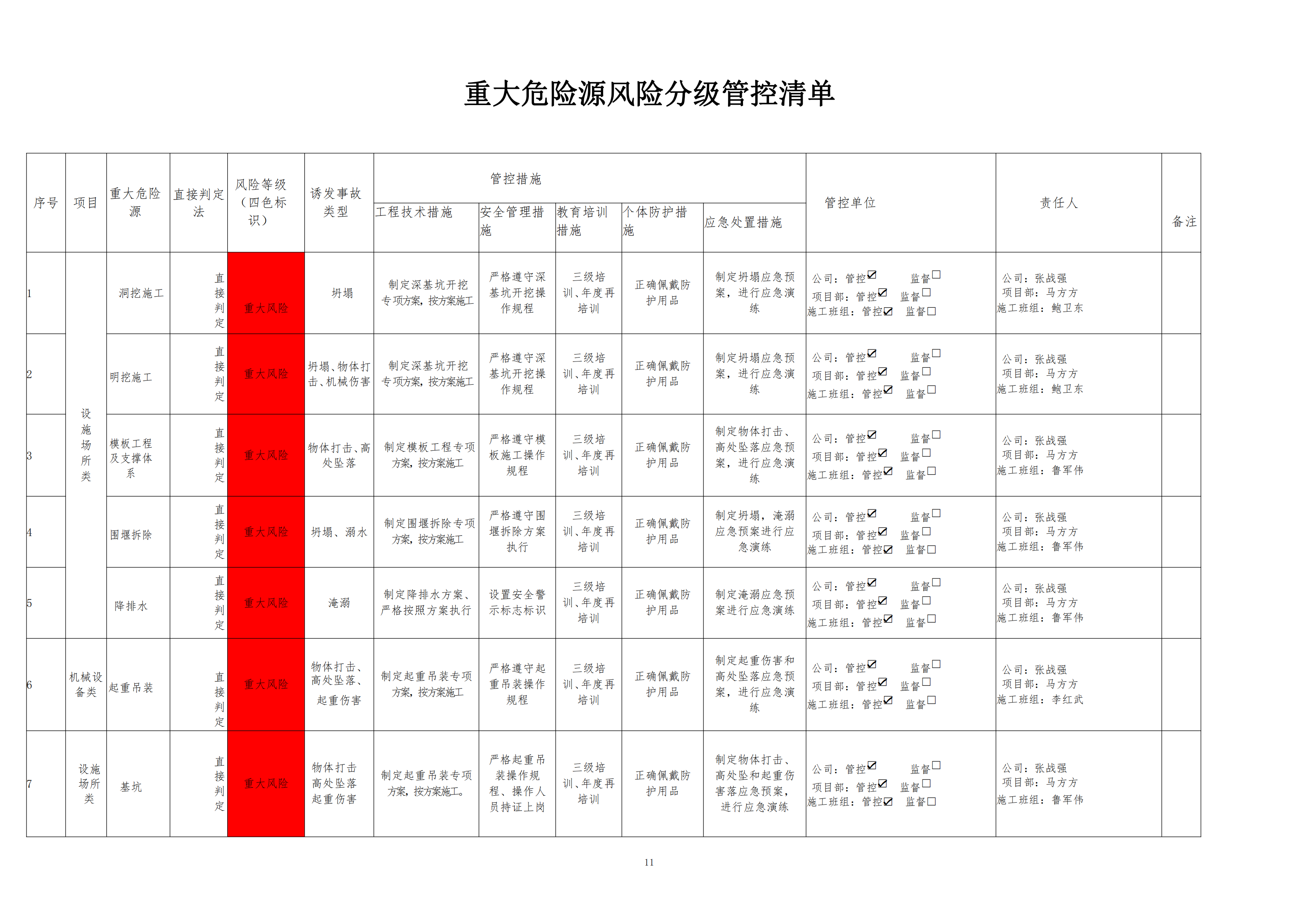 欒川縣新建水庫一期工程施工一標段危險源風險分級管控清單(6月)