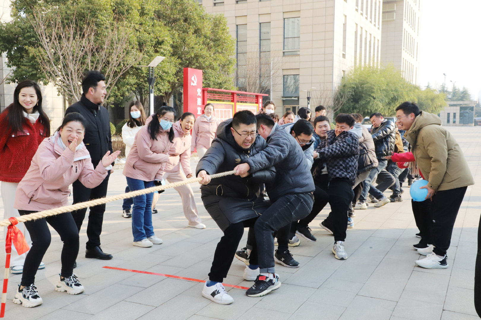 數(shù)九寒冬興賽事,熱情似火融冰雪。12月26日上午,公司在辦公大廈前廣場舉辦“喜迎元旦”趣味運動會,公司機關和項目80余名員工參與了此次活動。公司常務副總經(jīng)理成益洋、紀委書記段曉平、監(jiān)事會主席孫海晶、總經(jīng)濟師暢瑞鋒、副總工華忠等領導親臨賽場,為運動員加油助威。