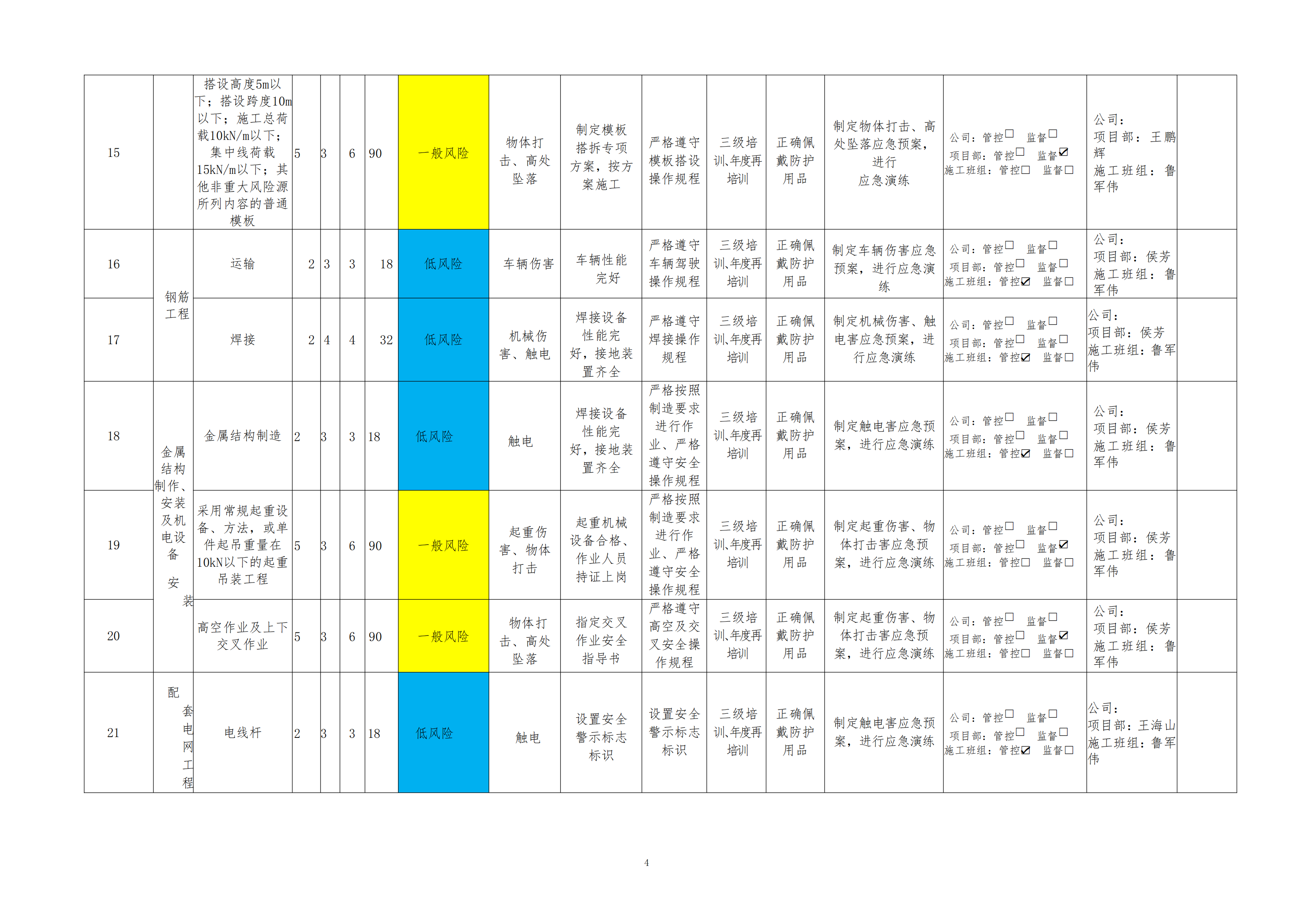 欒川縣新建水庫一期工程施工一標(biāo)段危險源風(fēng)險分級管控清單(7月)