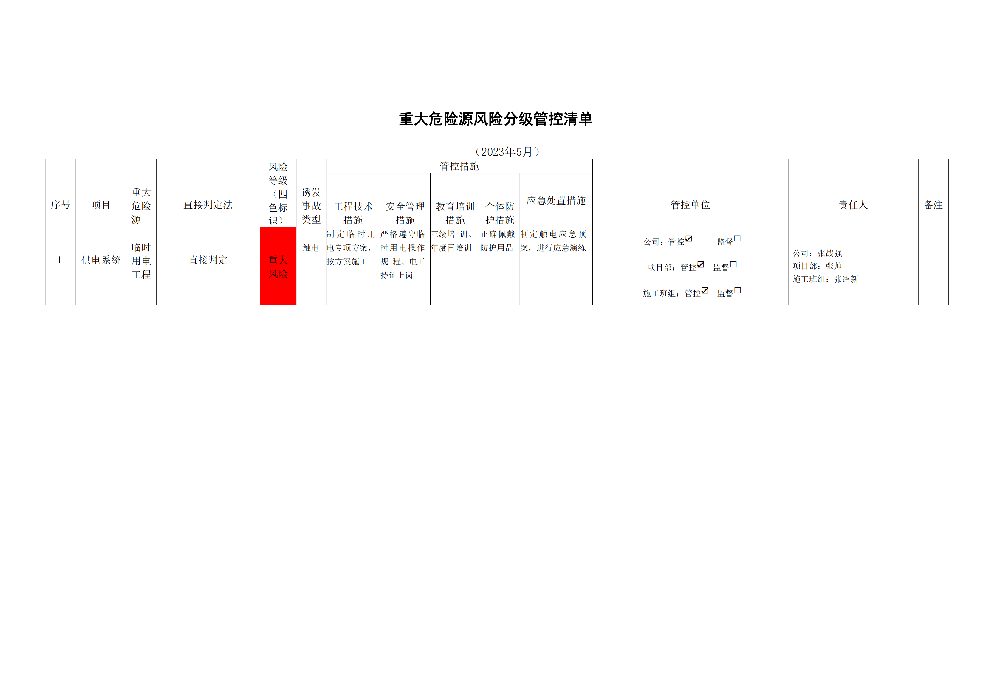 洛寧縣洛河生態(tài)治理三期危險源風險分級管控清單(4月)