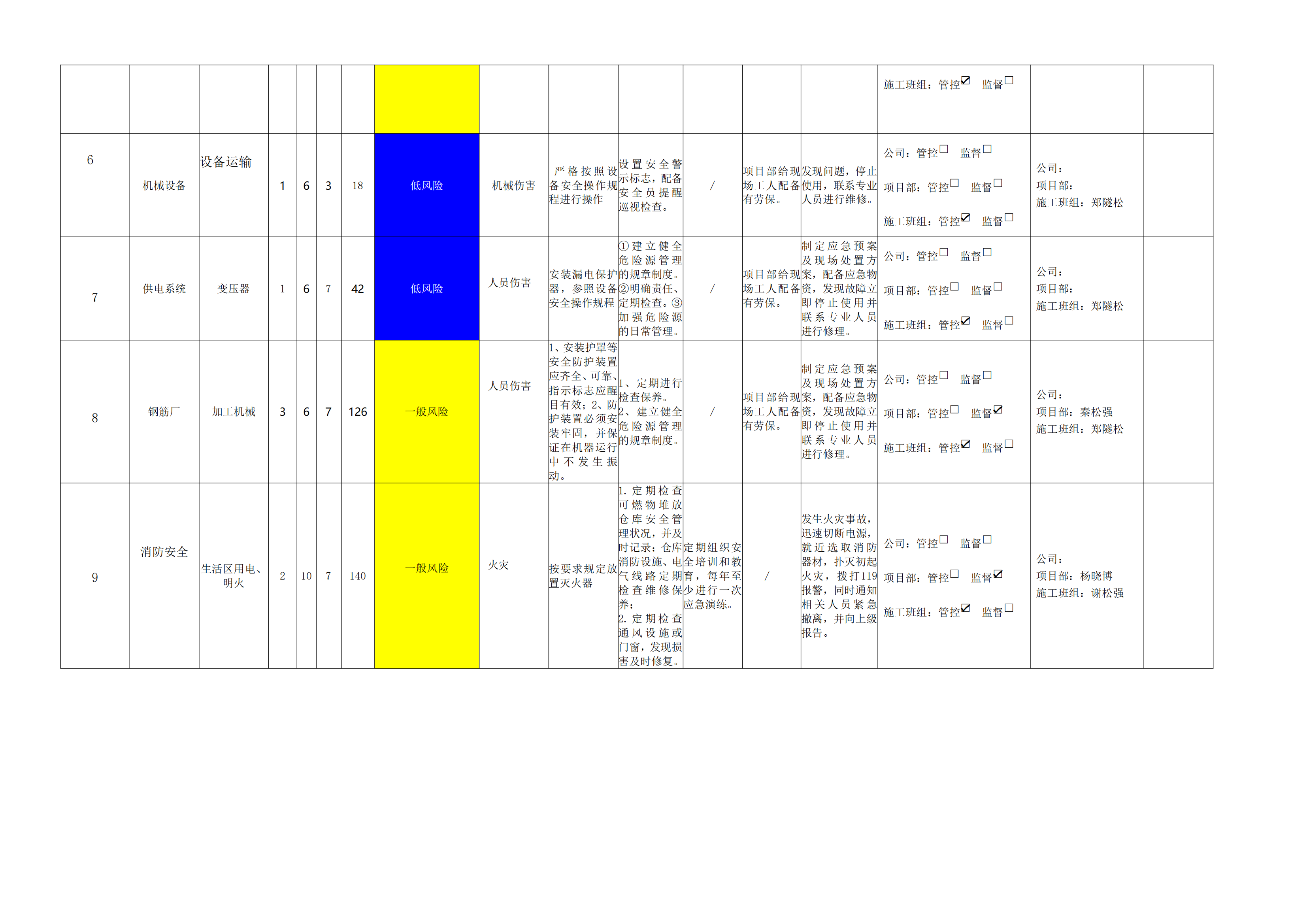 小浪底南岸灌區(qū)7標(biāo)項(xiàng)目危險(xiǎn)源風(fēng)險(xiǎn)分級(jí)管控清單(3月)